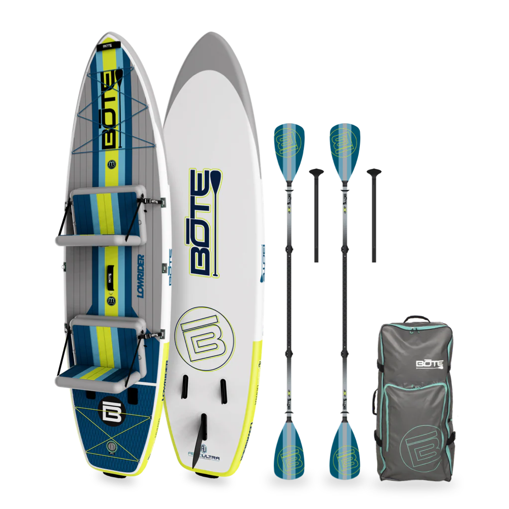 Elevate your adventure with the LowRider, our elite SUP+Kayak hybrid paddle board. Coming ready with removable seats and SUP+Kayak Hybrid Paddles, it's outfitted with BOTE's signature elements. From securing your KULA Coolers with dedicated tie-downs to leveraging our Rac Systems for optimized utility, and innovative MAGNEPOD™ attachment points to secure your drinks, it's the embodiment of water versatility. Whether on a solo mission with the 10'6" or a team venture with the 11'6" tandem, every ride promises an adrenaline-packed adventure.