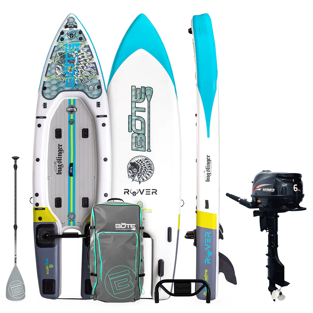 It’s a skiff. It’s a dingy. It’s a tender. It’s a motorized inflatable paddle board. It’s a BOTE...in a bag. Meet the patented Rover Aero 12′6″ - our AeroBOTE technology makes it the most portable microskiff on the market. Transforming from travel bag to BOTE and back again, it’s easy to store, tags along on any adventure, and stands up to the toughest tests on any waterway, and hell...even baggage claim. So as you’re paddling, fishing, or motoring your way across the globe, Rover AERO’s got your back.